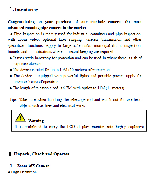 º»Àåºñ´Â °íÇØ»óµµ¸¦ °¡Áø Ä«¸Þ¶ó(SONY/JAPAN)¿Í HIGH BRIGHTNESS(CREE/USA)ÀÇ LED¸¦ °¡Áø ¸ÇȦ³»½Ã°æÀ¸·Î¼­, ³»ºÎ°ø°£ÀÌ 100MM-1800MM Àΰ÷À¸·Î¼­ ÁöÇÏÆÄÀÌÇÁ¶óÀÎÀ̳ª TUNNELS,CONTAINERS µî ³»ºÎ¿¡¼û°ÜÁøºÎºÐ ZOOM(36X) ±â´ÉÀ»°¡Áö°í ¾à120M µÇ´Â ÁöÁ¡±îÁö °üÂûÇÒ¼öÀÖ´Ù.